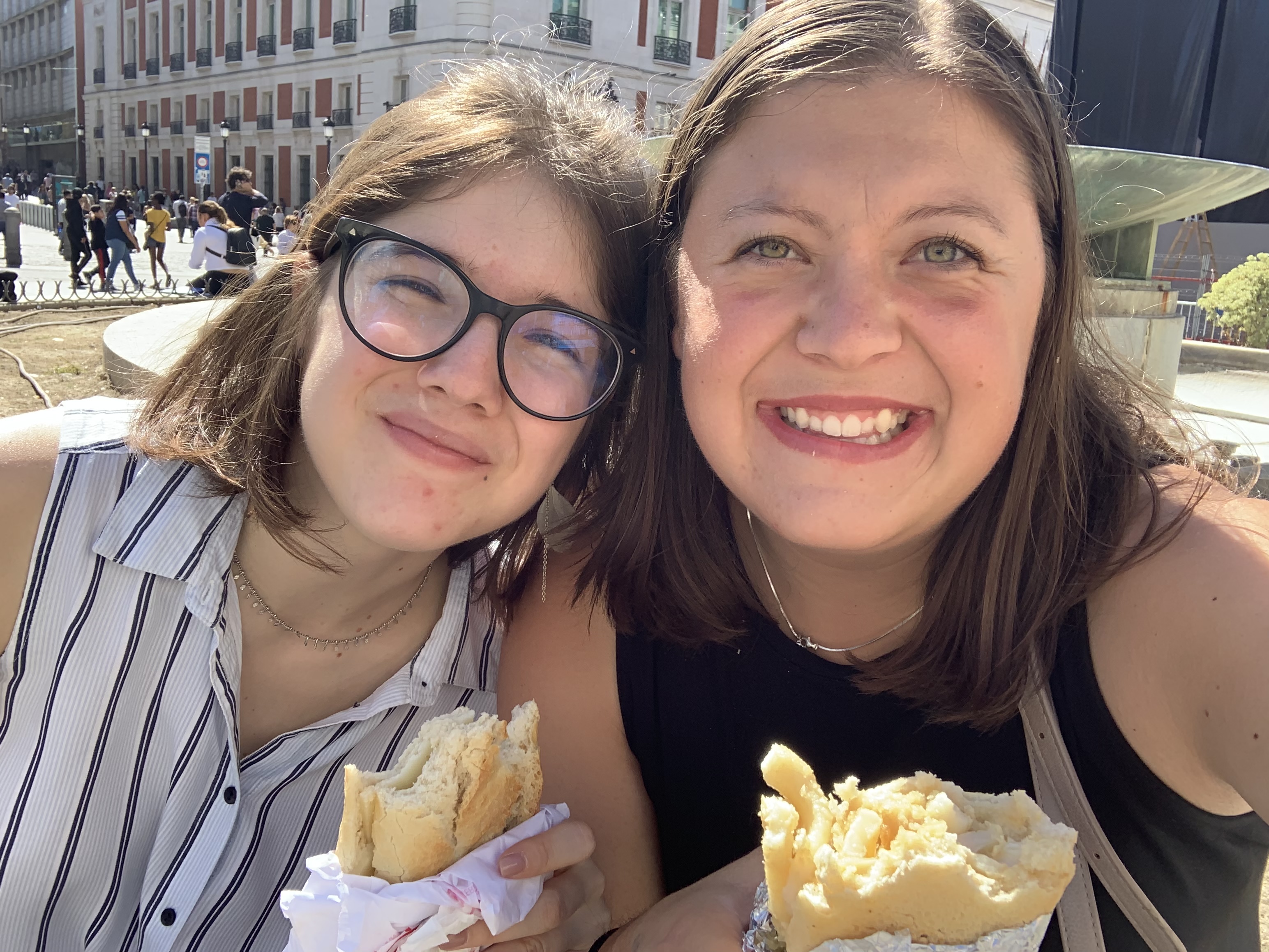 I arrived to Madrid, Spain late Tuesday night the 24th. My journey from Denver to Madrid went great. On my last plane ride from Paris, France to Madrid I sat by a very nice family with two kids that were 5 years old. I followed them and we both had an adventure trying to figure out which baggage claim to go too. I had wonderful conversations with them since they knew a decent amount of English. Beatriz welcomed me in with a sign while waving Spain’s flag.